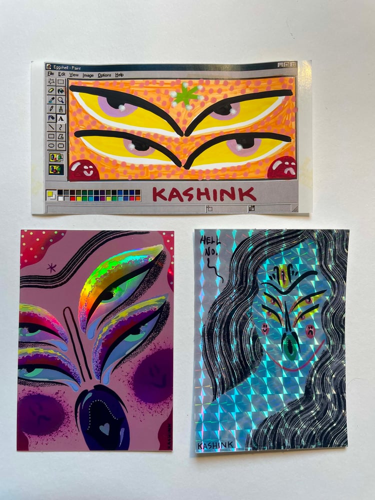 1 hand made sticker with vintage Microsoft Paint layout 6x10cm